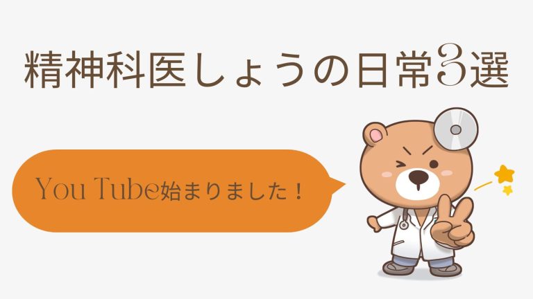 こんにちは、精神科医しょうです。 毎週金曜恒例の精神科医しょうの日常3選の日がやってきました! これは私の完全プライベートな話であり、有益・無益に関わらず1週間にあったことをシェアしているものです。 そのため、私の日常に興味が一切ない人はこのまま読み進めずに削除をお勧めします。 では早速ですが、本編をどうぞ。 ついにクマさん動き出す! これはYouTubeライブの動画です。先日、私のチャンネルでラ […]